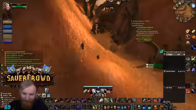 05:24:59Die Gruppe arbeitet an einer Escort-Quest, die mit einer einzigartigen Mechanik verbunden ist. Neben dem Eskortieren des Goblins müssen die Spieler kleine 'Erdmännchen' (Ziesel) mit einer speziellen Kiste und Routen spawnen, die 'Knollen' ausgraben. Jeder Spieler muss sechs dieser Knollen sammeln. Der Streamer erklärt die Herangehensweise detailliert: Man spawnet die Tiere, schickt sie auf die Route, und sie graben von selbst die Knollen aus, was den Prozess beschleunigt, aber auch für Chaos sorgen kann, wenn sie zu weit von der Gruppe weglaufen.