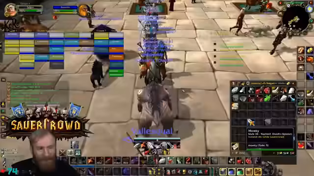 04:08:35Das Management von Dungeon-Gruppen wird als komplexes Problem beschrieben. Oft sind dieselben Personen für das Organisieren zuständig, was die Rotation erschwert. Der Streamer selbst bemüht sich täglich, komplett neue Gruppen zu bilden. Für den Gnomeregon-Run wird ein neuer Heiler benötigt, nachdem der alte Tank sich disconnectet hat. Das Buch für die Quest hat eine Spawnzeit von 3-5 Minuten, was koordiniert werden muss. Währenddessen wird eine strategische Diskussion über World Buffs geführt und wie man sie für die Raids optimal einsetzen kann. Auch die Mechanik von PvP-Rängen wird beleuchtet.