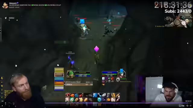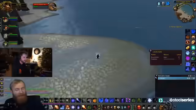 05:40:15Nach Abschluss der Dungeons und Quests plant die Gruppe ihre nächsten Schritte. Der Streamer bereitet den Rückzug aus dem Dungeon vor, während die Spieler die gesammelten Gegenstände verwalten. Es werden verschiedene Optionen für die Loot-Verteilung besprochen, darunter der Verkauf auf dem Auction House oder die Verwendung eines Verzauberers. Die Stimmung ist locker und humorvoll, und es wird über den Rückflug zum nächstgelegenen Flugpunkt gesprochen, um dort die Quests abzugeben und die weiteren Pläne zu besprechen.