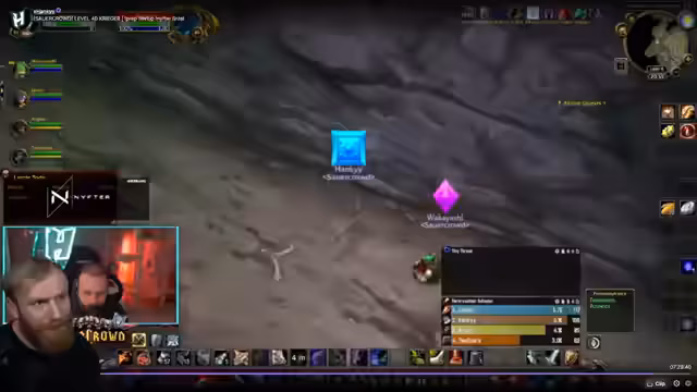 08:13:19Es kommt zu einer hitzigen Diskussion über einen tödlichen Vorfall in einer Dungeon-Gruppe. Nagura versucht verzweifelt, Kitten mit einem Seal zu retten, scheitert aber nur Bruchteile von Sekunden am globalen Cooldown. Der Streamer verteidigt Naguras Handeln, stellt aber gleichzeitig ungeschickte Entscheidungen der Gruppe infrage, wie z.B. das Springen in den Aufzug. Es entsteht ein chaotischer Versuch, den gestorbenen Spieler zu unterstützen.
