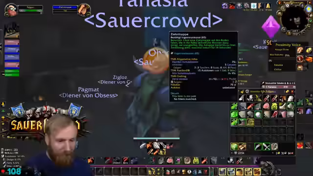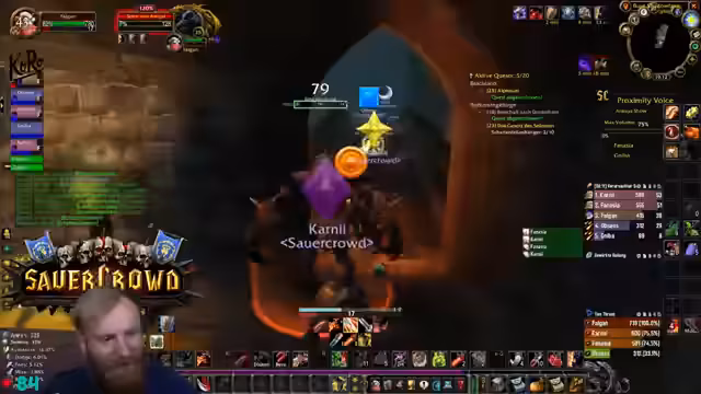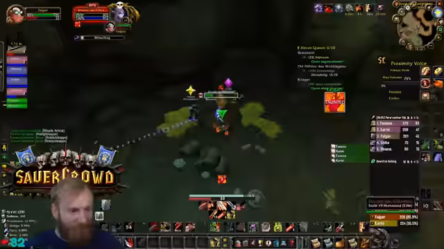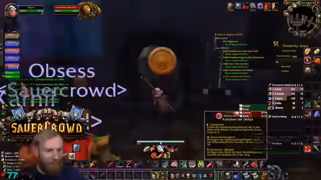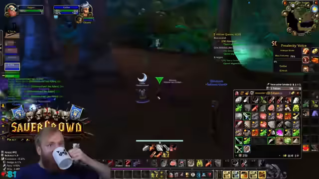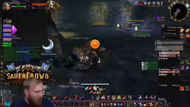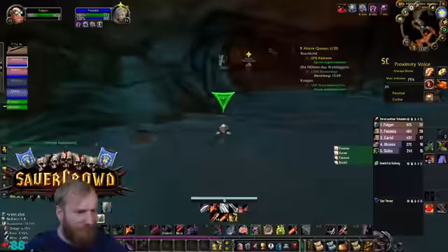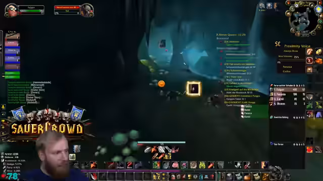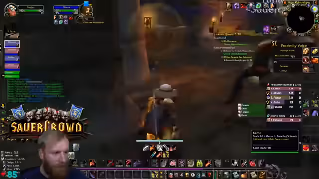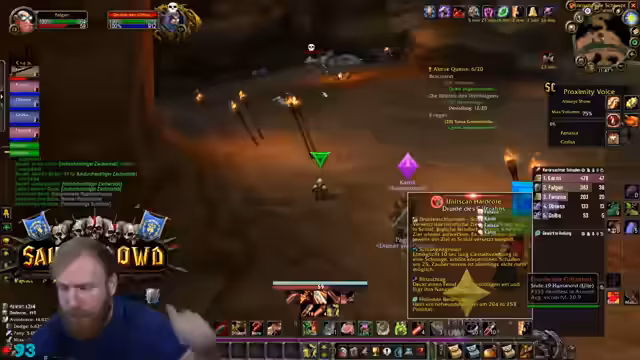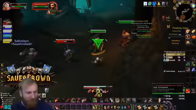 00:19:51Der Streamer äußert Bedenken bezüglich der Gruppenzusammenstellung für Deadmines, da ein hochleveliger DPS (Level 31) in der Gruppe ist, während andere Spieler den Inhalt eigentlich benötigen. Trotzdem beginnt der DM-Run. Während des Runs gibt es technische Schwierigkeiten mit den Stream-Deck-Buttons, die Discord-Mutes und unmutes betreffen, was den Streamer verunsichert. Die Gruppe besteht aus Kerak, Mark Oliver und Salty Deng.