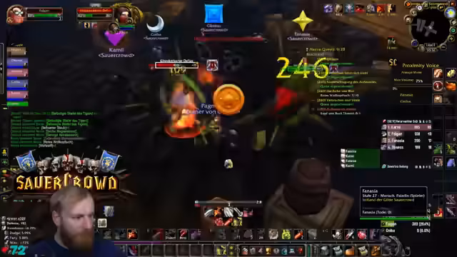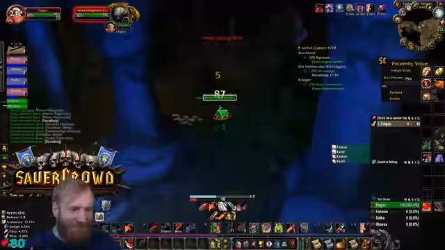 12:03:36Der Streamer befindet sich im Blackfathom Deep (BFD) Dungeon und berichtet über den Kampf gegen einen Boss, den er als "banger" beschreibt. Während des Kampfes werden technische und gameplaybezogene Themen angesprochen, darunter ein schneller respawn von Mobs und die Notwendigkeit, nur noch vier Questgegenstände zu sammeln. Es kommt zu kurzen Verwirrungen bezüglich des Eingangs des Dungeons und der Position des Heilers. Auch die Weltbuffs von Zul'Gurub werden als wichtiges Ziel für die Gruppe erwähnt, und der Streamer kündigt an, nach Abschluss des Runs Essen zu gehen.