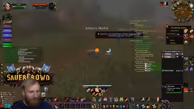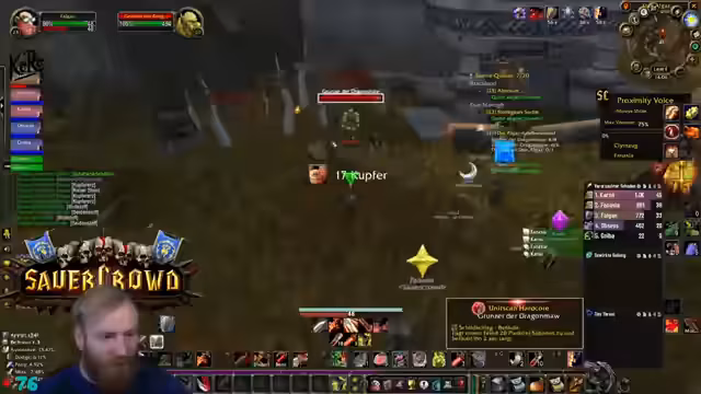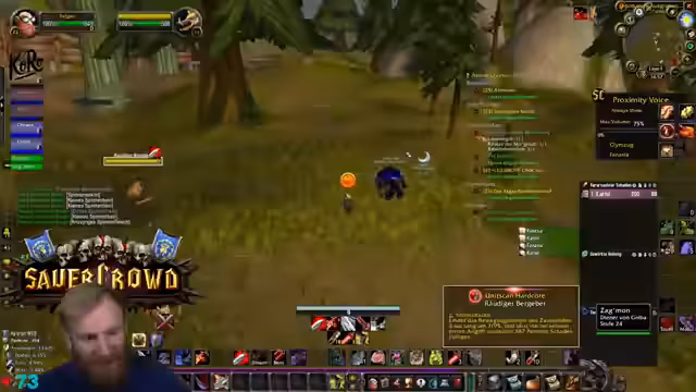 07:55:34Ein kritischer Griefing-Vorfall ereignet sich, bei dem eine Spielfigur durch einen gezielten Angriff von einem Elite-Mob getötet wird, was den Streamer und die Gruppe verunsichert. Der Vorfall wird aufgenommen, um Beweise für einen möglichen Bann zu sichern. Der Streamer warnt die Gruppe und den Chat eindringlich, niemals AFK ausgeloggt zu bleiben, und erklärt, dass selbst kurze Abwesenheiten zu solchen Vorfällen führen können, die in der WoW-Community verboten sind.
