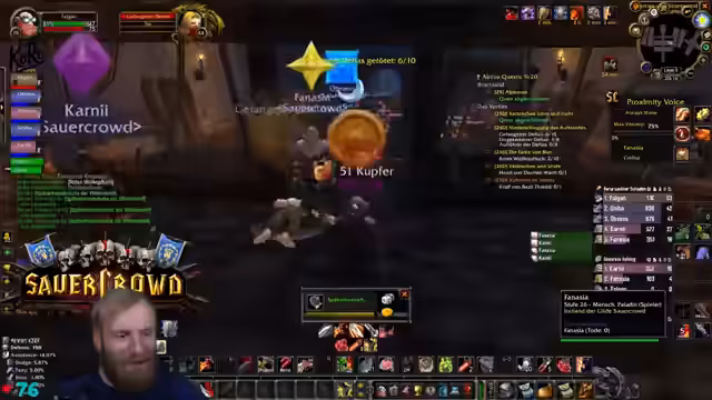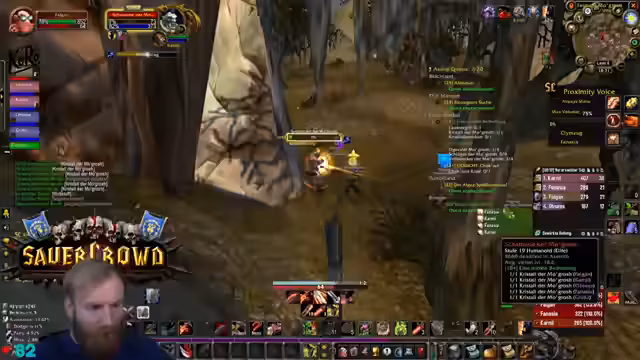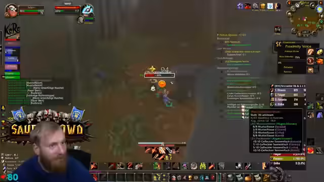 04:19:35Die Gruppe meistert einen Kampf mit einem Mobs, der aus dem Nichts auftaucht, mit Erfolg. Der Streamer fühlt sich dabei wie der größte Gamer und ist erleichtert, dass er sein Parfüm aufhat. Anschließend wird über den nächsten Plan gesprochen. Es gibt eine Diskussion über die Annahme einer Paladin-Quest, die an einen fernen Staudamm führt. Die Unterhaltung über notwendige Einstellungen im Spiel, wie Target of Target, dient der besseren Koordination und Sicherheit im Kampf.
