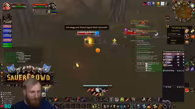 00:28:54Im Inneren von Deadmines geht die Gruppe konsequent vor. Ein Spieler versucht, einen Boss solo zu tanken, was den Streamer verunsichert, da er dies als unnötiges Risiko ansieht. Er erinnert die Gruppe daran, dass es keinen legitimen Grund für ein solches Vorgehen gibt und es zu einem tödlichen Fehler für die Gilde führen könnte. Der Streamer bleibt bei seiner strategischen Philosophie: lieber sicher und langsam als gefährlich und schnell.