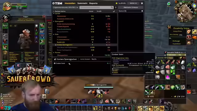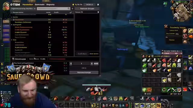 00:01:01Der Stream beginnt mit dem Streamer, der über seinen schlechten Schlaf klagt und seine Erschöpfung erwähnt, betont aber, dass der gestrige HDW-Run erfolgreich war. Es herrscht noch wenig Publikum, und der Streamer plant, erst einmal die Berufe aufzufrischen und Platz im Inventar zu schaffen. Die Ziele für den Tag sind das Skillen von Stabwaffen, das Suchen einer Kiste und das Beschaffen von leichtem Leder für die Engineering-Fliegerbrille, wobei das Lederproblem bisher ungelöst ist.