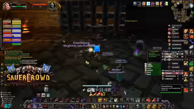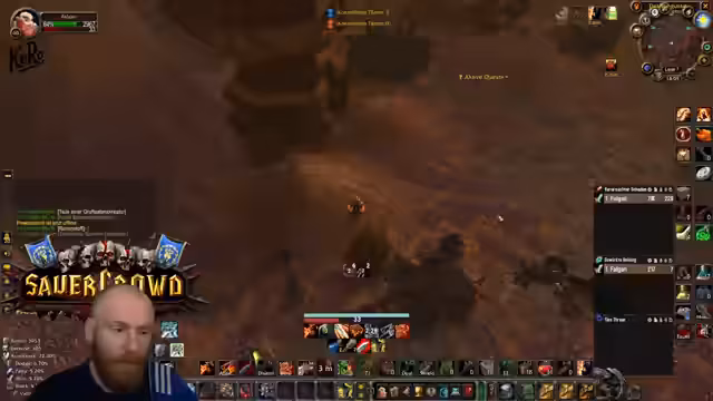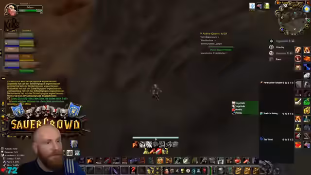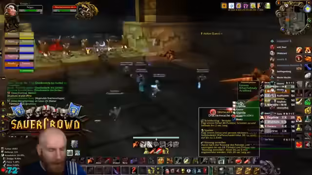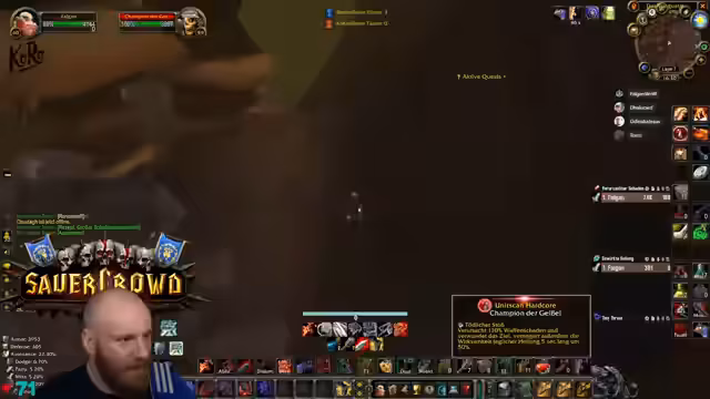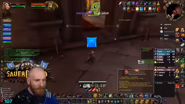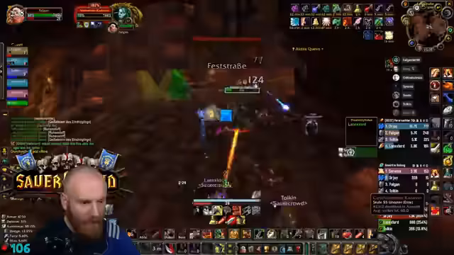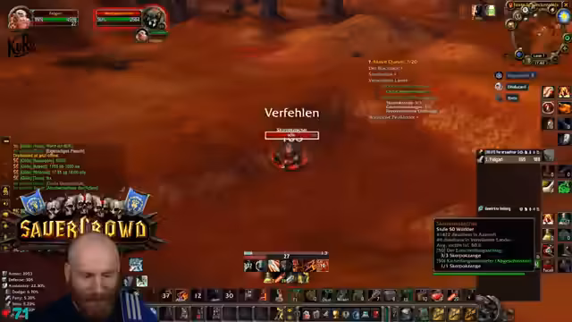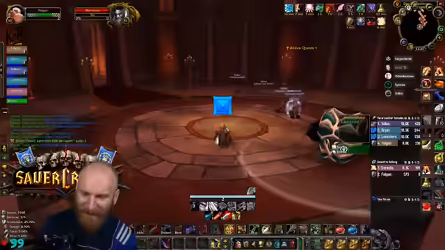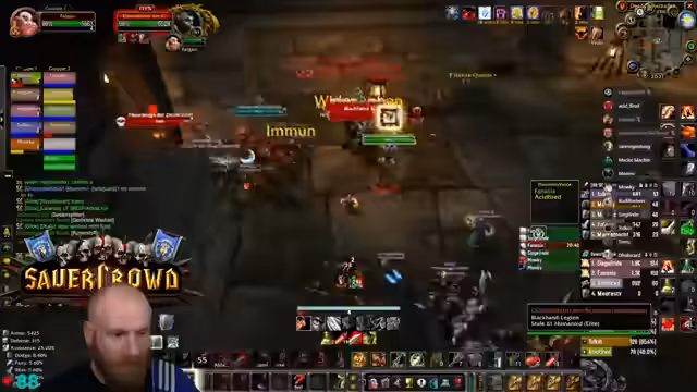 09:31:54Der Kampf beginnt, und der Streamer agiert als Tank. Er führt die Adds priorisiert an und gibt klare Anweisungen, während die Transition bei 40% eingeleitet wird. In diesem kritischen Moment wechselt er sofort zu 'Shield Wall' und fordert ein 'Disarm'. Der Kampf ist intensiv, und es kommt zu gefährlichen Situationen, wie dem Tod eines Gruppenmitglieds, was die hohe Priorität der Ads verdeutlicht.