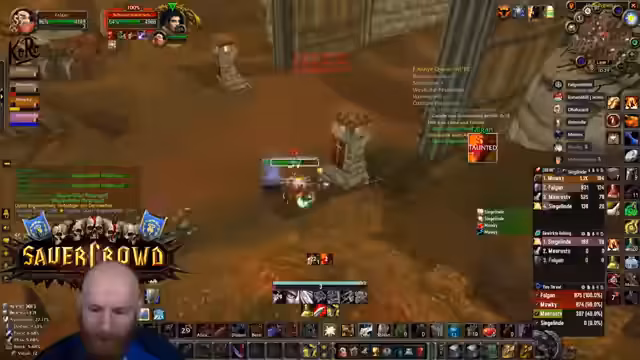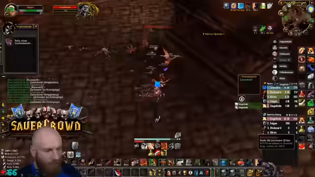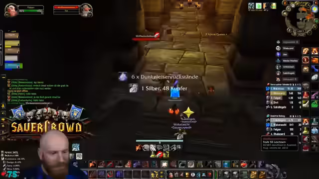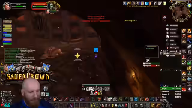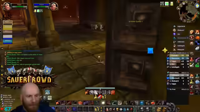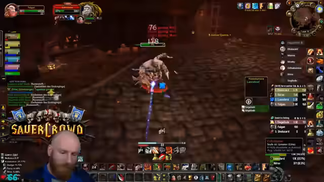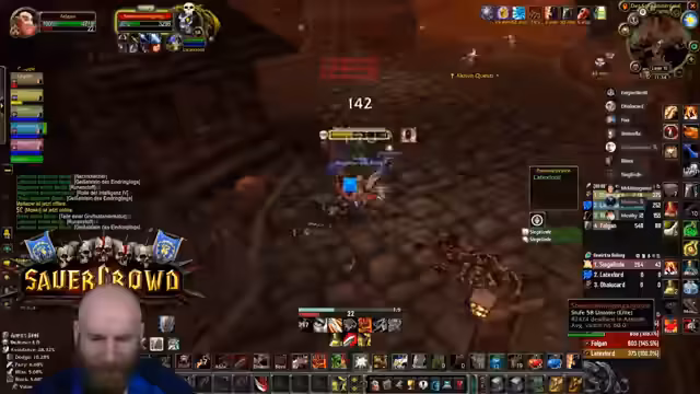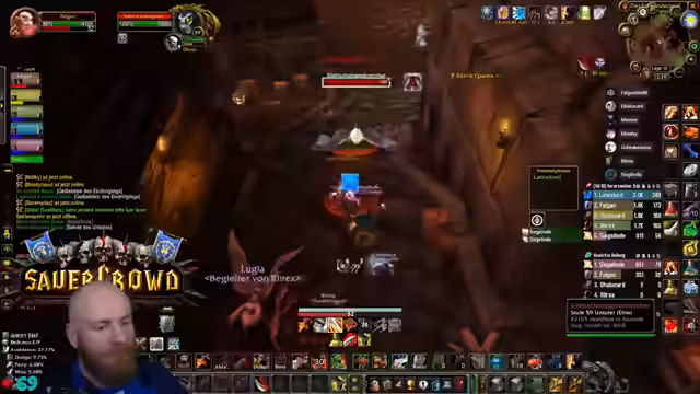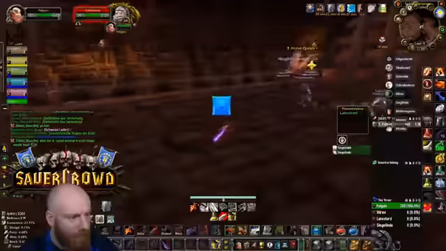 11:00:32Die Gruppe erreicht den Säuferraum in Blackrock Depths und startet eine spezielle Quest. Um den Barkeeper zu besiegen, müssen zunächst Fässer zerstört werden, während darauf geachtet wird, nicht die Gäste mit dem Kreuz anzugreifen. Dies erfordert präzises Vorgehen, um ungewollten Aggro und einen Kampf mit dem gesamten Raum zu vermeiden.