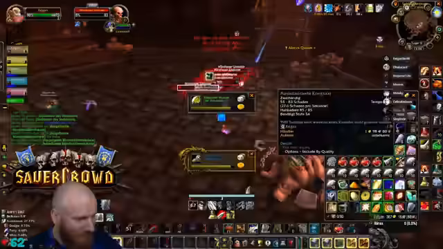 12:19:27Es werden weiterhin Dungeons wie die KernfragmentsGruft und Satyrische Wildnis gegrindet. Dabei fallen speziell Items für den Magier-Spezialisationsgrind. Der Streamer bemängelt, dass bestimmte Beutestücke wie die Handschuhe für die spezielle Magier-Quest nicht droppen, und es werden Diskussionen über den optimalen Grind und die Prio von gefallenen Items geführt. Außerdem werden Gegenstände wie Essenz gesammelt, um Erzmagerobe zu schmieden.