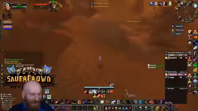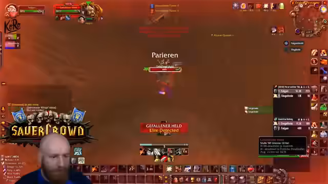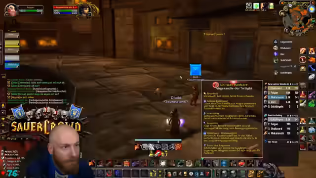 14:28:20Der finale Kampf gegen den Ogerboss beginnt. Der Streamer nutzt einen Schädelhaufen, der heftigen Schaden anrichtet, sobald er verfügbar ist. Die Taktik ist komplex und erfordert genaue Koordination, insbesondere das Schieben der Adds und die Vermeidung von gefährlichen Fähigkeiten des Bosses. Nach dem Sieg werden die Weltbuffs erneuert und die Gruppe erhält mächtige Buffs für den weiteren Spielverlauf. Der Streamer lobt die Leistung der Gruppe und gibt wichtige Hinweise zur Buff-Verwaltung.