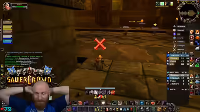 07:32:38Die Gruppe bereitet sich auf den Dungeon-Einsatz vor. Der Streamer macht einen Ready-Check und koordiniert die Verteilung der Ziele. Nach einem kurzen Port glitcht er sich versehentlich aus dem Dungeon, aber er ist sofort wieder da. Die Kommunikation ist wichtig, da er die Gruppe anweist, in der ersten Phase die Packs zu killen, bevor sie den Boss angehen.