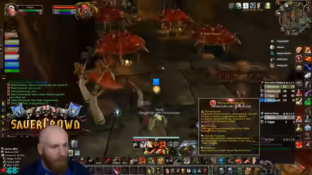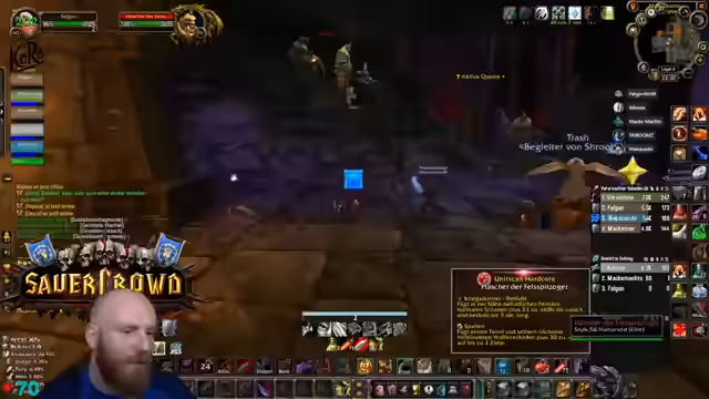 10:37:48Nach der technischen Pause plant die Gruppe, spezielle abgef**ckte Scheiß-Runs in Blackrock Depths zu machen, um seltene Items zu farmen. Gleichzeitig wird angekündigt, dass der Content für die Shorts am Wochenende starten wird und die Glatzen-Arc-Chronik abgehandelt wird. Die Gruppe arbeitet sich weiter durch den Dungeon, wobei Taktiken für die Bosskämpfe, wie z.B. den Golem-Lord, besprochen werden.