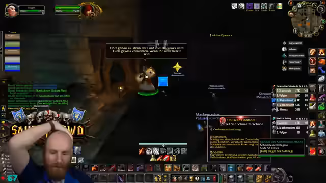 14:53:31Ein Teil des Streams ist der Abgabe von Quests gewidmet, die als Voraussetzung für den nächsten Schritt der T0.5-Questline dienen. Der Streamer baut den Schlüssel für die Upper Blackrock Spire (UBS) und erklärt den langwierigen Prozess dazu. Es wird über Pläne für zukünftige Dungeons wie Stratholme und Scholomance gesprochen, die am Folgetag stattfinden sollen. Das Ziel bleibt klar: die Vollendung der T0.5-Ausrüstung.