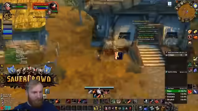 02:49:31Die finale Gruppe für den Dungeon-Run wird zusammengestellt, wobei alle fünf Spieler nun anwesend sind. Es wird die Skillung des Streamers als Tank mit Fokus auf Zweihandwaffen und Sweeping Strikes diskutiert. Zusätzlich zur spielerischen Koordination wird auch die gruppeninterne Rivalität zwischen den Allianz- und Horde-Spielern humorvoll angesprochen, was den gemeinsamen Run interessant gestaltet.