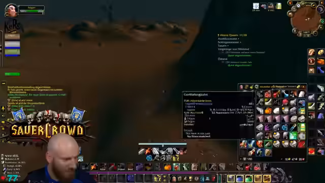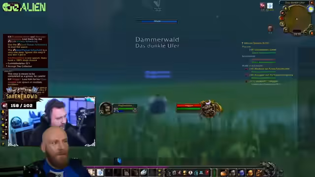 08:07:53Nach einer kurzen Ablenkung wegen eines technischen Problems wird der Fokus wieder auf die Gameplay-Ziele gelenkt. Die aktuelle Quest ist mit Level 45 noch relativ einfach, doch ein geplantes "Selbstmordkommando" zur Beschaffung von Kapitänsgear wird vorerst verworfen. Stattdessen beschließt der Streamer, eine "beschissene Reise" nach Ratchet anzutreten, um schwere Magiestoffbandagen zu besorgen und dann nach Menethil zu fliegen, um eine Elite-Quest in einer Höhle abzuschließen.