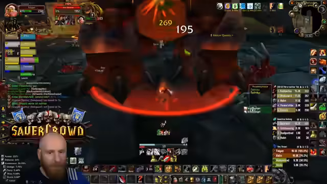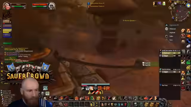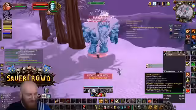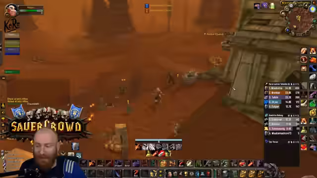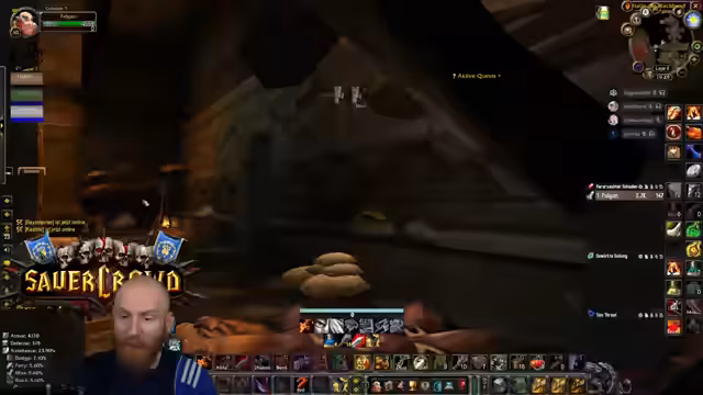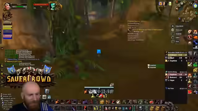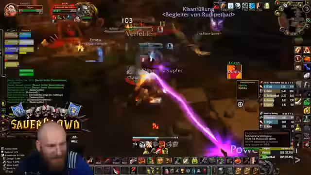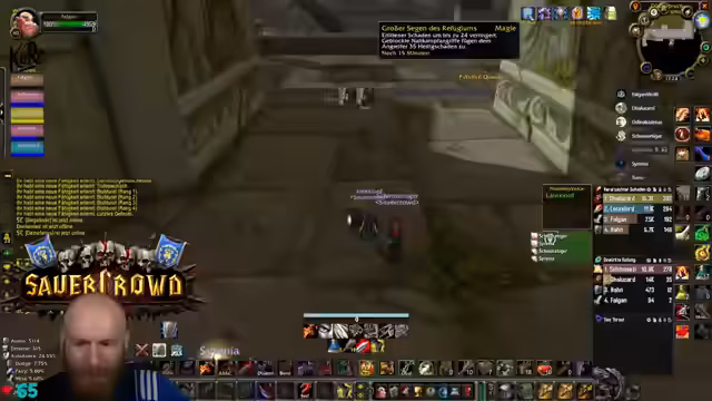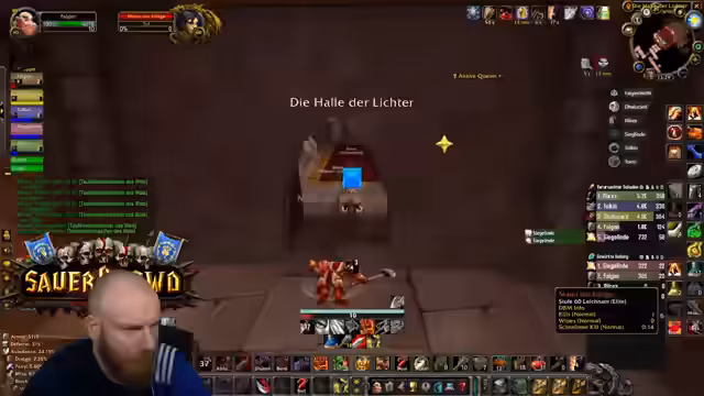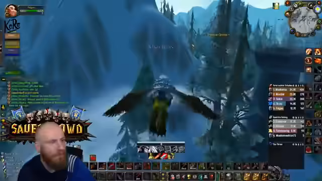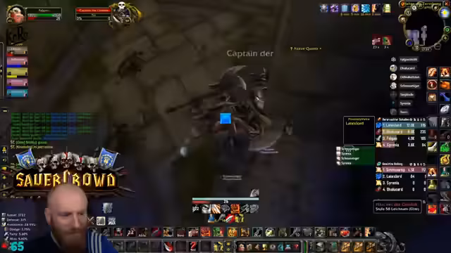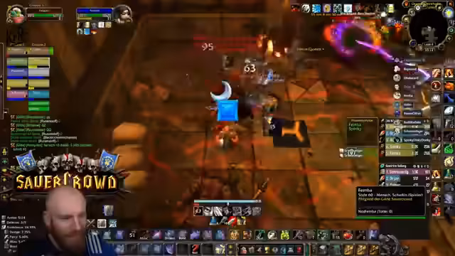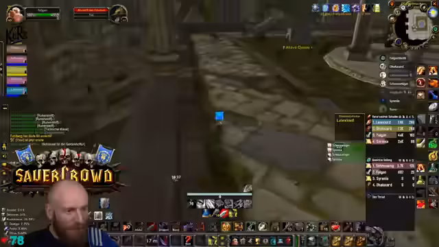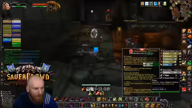 05:09:27Nachdem die Gruppe in die Nord-Bibliothek von Dire Maul gewechselt ist, um eine Quest weiterzuführen, steht ein spezieller Hunter-Boss an. Obwohl die Gruppe die meiste Zeit kontrolliert agiert und der Kampf verhältnismäßig einfach scheint, wird unerwartet hoher Schaden verursacht. Ein Kritischer Moment tritt ein, als der Boss einen Arcane Missiles-Zauber castet, der starken Schaden anrichtet. Dies führt dazu, dass der Tank (Hann) auf einem Turm von den Gebrüdern angegriffen wird und stirbt, was auf einen verpassten Escape-Weg oder unkontrolliertes Ziehen von Adds zurückzuführen ist. Ein Spieler stirbt auch durch fallenden Schaden, was die Gefahr von Unachtsamkeit in diesem Dungeon verdeutlicht.