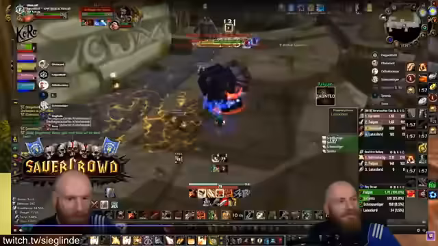 01:23:15Die Gildenmitglieder kämpfen gegeneinander, was zu unvorhergesehenen Zügen des Bosses führt, der einen hinteren Mob zieht. Ein Kolben, der von Timmy gedroppt ist, wird als witzig angesehen und wird von dem Spieler, der das Kloster gefunden hat, genutzt. Die Gruppe konzentriert sich auf das Spiel mit zwei Waffen ohne Schieb und hat Schwierigkeiten, einen Kraft- oder Zauberstab zu finden.