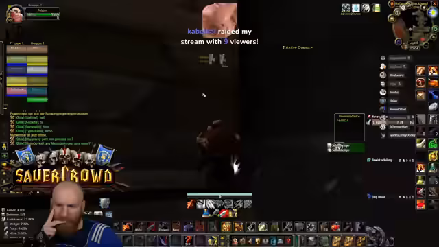 09:25:03Der Streamer erzählt vom gestrigen 'Wakatashi-Inzident', einem Vorfall in der Arena bei dem Wakantachi getrollt wurde. Spieler Pudi sprang in die Arena, während Wakantachi draußen war und konnte nicht mehr hinein. In Panik platzierte er direkt ein Portal und floh, anstatt den Ruhestein zu benutzen oder selbst einen zu platzieren. Dieser Vorfall führte zu Diskussionen im Chat über das Verhalten in PvP-Situationen und das Vorkommen von Mobs, die gegen bestimmte Schadensarten immun sind, was den Einsatz von Klassen wie Schurken einschränkt.