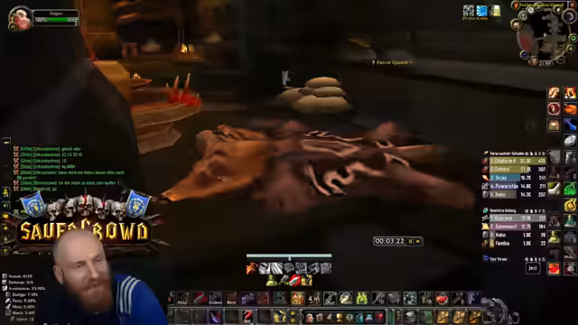 03:10:05Für die Durchführung des UBRS-Runs schließt sich die Gruppe einer anderen Gilde an, die eine Instanz-ID (ID) für den 10er-Modus hat. Diese Zusammenarbeit ist notwendig, da man selbst keine ID besitzt. Während des Runns ereignet sich ein gefährlicher Moment, als jemand eine Kiste versehentlich stößt, was zu einem engen Zusammenspiel und einem 'Close Call' führt. Letztendlich verläuft der Run erfolgreich, und der Clip davon wird wahrscheinlich im Stream gezeigt werden.
