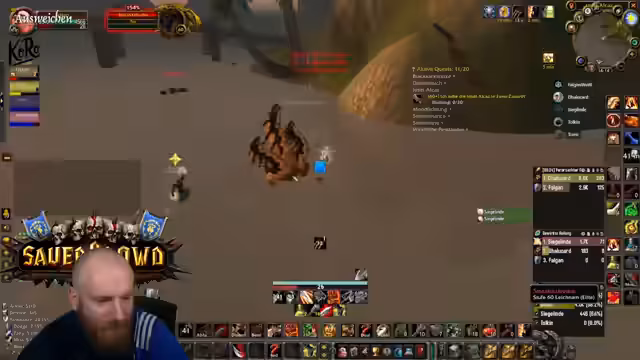 02:57:36Aufgrund des Zeitdrucks, da einige Spieler wie Sigi bald gehen müssen, wird eine schnellere Durchführung der Aktionen beschlossen. Man beschließt, den Nagger-Farm schnell zu beenden und direkt nach Winterspring zu reisen, um die benötigten Materialien für Walter Lack zu farmen. Tolkien wird für die Fahrt nach Winterspring mitgenommen, um die Reisezeit zu sparen. Für den Abend wird geplant, UBRS-Runs zu machen und die Gruppe für den finalen Walter-Lack-Versuch zusammenzustellen, der für den Quest-Abschluss entscheidend ist.