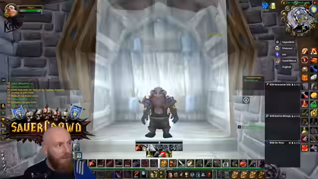 11:37:21Es wird über technische Vorbereitungen gesprochen. Der Sprecher hat alle Baustufen für ein Gebäude erhalten und sucht noch nach Magiestoff. Ein Nutzer fragt nach Kronos, während ein anderer über das Testen von Spielmechaniken wie dem Verlassen der Lava in Ironforge spricht. Die Nutzung von Addons wie dem Fretmeter wird als sinnvoll für das Aggro-Management beschrieben, wird aber nicht als zwingend erachtet. Der Ton ist dabei oft humorvoll und bezieht sich auf vorherige Erlebnisse.