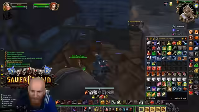 14:38:17Beim Anlauf zum Endboss von LBRS wird die finale Vorbereitung besprochen. Der Streamer wechselt sein Equipment, nutzt eine Diamantflasche und gibt den Heilern Anweisungen, den Loot einer speziellen Quest gleichzeitig abzugeben, um einen Reset zu vermeiden. Er betont, dass der Drop dieser Quest eine Quest startet, die im Verlauf sehr gute Handschuhe als Belohnung verspricht. Die Koordination der Gruppe ist hierbei entscheidend.