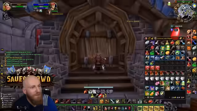 12:57:21Die Gruppe bereitet sich auf einen Besuch in Molten Core vor. Der Streamer ist enttäuscht, wenn nicht mindestens eine Person einen spezifischen Gegenstand (vermutlich ein 'Schatten Resist' Trinket) hat. Lord Vaultnerlock wird als mögliche Quelle für einen guten Ring erwähnt. Abschließend wird angekündigt, dass sie etwas für Sonntag lernen werden.