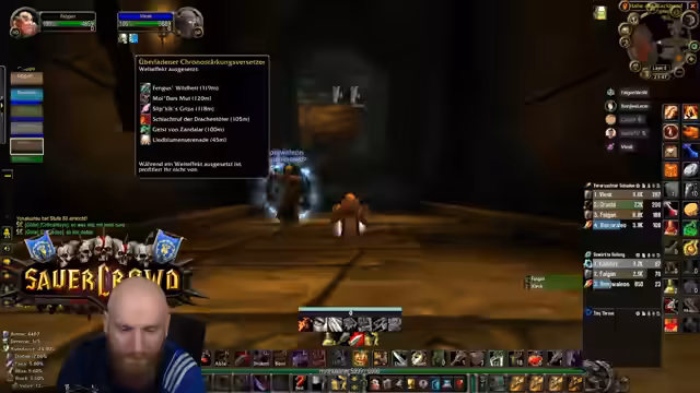 13:54:26Im Dungeon werden Mobs entdeckt, die einen Magic-Debuff auslösen, der den Feuerschaden erheblich erhöht. Die Gruppe hat es mit zwei Herbeirufern zu tun, die diesen Debuff verursachen und gleichzeitig Feuerschaden anrichten. Dies erfordert schnelle Dispel-Aktionen, um die Schadenswirkung zu minimieren und die Gruppe am Leben zu erhalten.