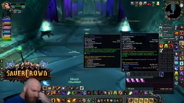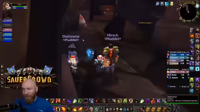 00:10:28Nachdem die Carapay-Quest erfolgreich abgeschlossen wurde, wechselt die Gruppe den Ort. Der Streamer loggt kurz um, bereitet Buffs vor und die Spieler treffen sich am Eingang von Die Dampfkammer. Der Streamer nutzt das Addon Atlas Loot, um gezielt nach spezifischem Loot wie dem Atlas Favoriten-Ring zu suchen. Er plant, den Dungeon komplett zu farmen, bis keine benötigten Gegenstände mehr droppt. Die Gruppe ist bereit für den ersten Boss, und die Kommunikation für den Pull läuft an.
