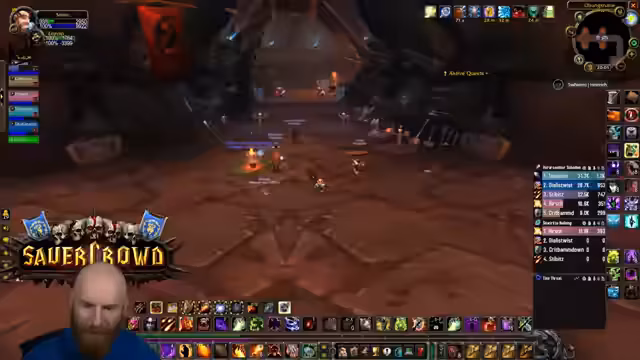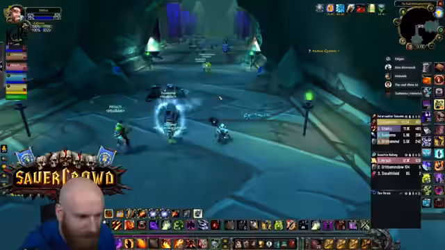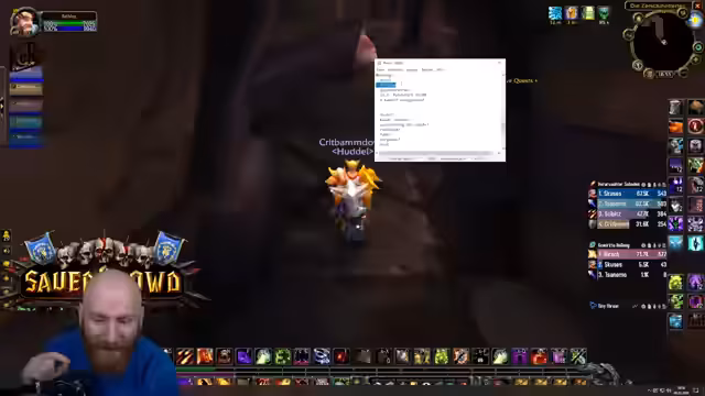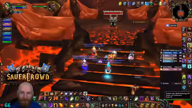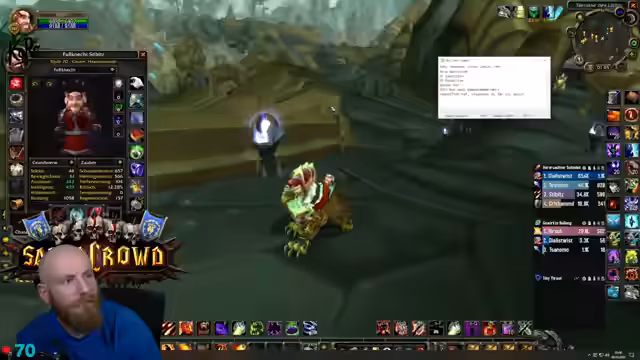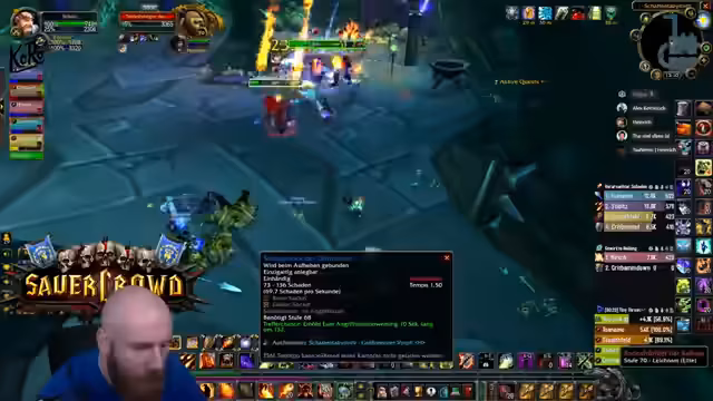 01:38:23Der Streamer führt seine Gruppe durch einen Dungeon, wobei er als Tank agiert und auf strategische Positionierungskämpfe gegen Bosse achtet. Es kommt zu hektischen Phasen, in denen er versucht, die Adds zu kontrollieren, den Boss im Fokus zu halten und die Gruppe vor AoE-Schäden zu schützen. Die Kommunikation mit den Group-Mitgliedern ist entscheidend, um Koordinationsfehler zu vermeiden und den Raid zusammenzuhalten. Es fällt auf, dass die Gruppe bei manchen Bosskämpfen Unterstützung durch Gnome benötigt, was jedoch nicht immer gewährleistet ist.
