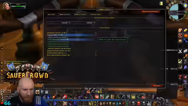 04:18:41Zu Beginn des Streams bereitet sich der Streamer auf den Dungeon Zul'Farrak vor. Er beruhigt seine Zuschauer und betont, dass der Dungeon langsam gespielt wird, weshalb kein Stress mit sogenannten 'Safe-Spots' besteht. Anschließend geht er auf seine Quests ein. Er erwähnt eine 'Kack-Trock-Dance'-Phase auf Sauerkraut und die Probleme mit level-5-ton-gespamten Chat in Höhlen. Er klärt die Anzahl der Quests für Zul'Farrak und beginnt, die verschiedenen Ketten zu organisieren, die in die Schlucht führen, einschließlich einer Quest aus Loch Modan.
