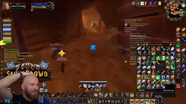 04:02:29Ein großes Problem ist das volle Inventar, das es unmöglich macht, weiteres Loot aufzuheben. Der Streamer muss seinen Amboss löschen, um Platz zu schaffen. Gleichzeitig werden die Vorbereitungen für den nächsten Dungeon, Zul'Farak, getroffen, inklusive Buffs und einer klaren Rollenverteilung. Es wird über das Niveau der Mitspieler gesprochen und dass die Gruppe das Map-Reading übernimmt, da der Streamer sich auf den Kampf konzentriert.