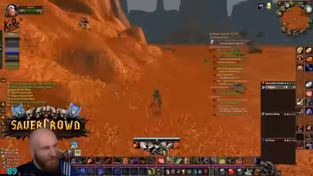 08:33:39Der Streamer wechselt zu einem entspannten Gameplay-Modus in Tanaris. Gemeinsam mit seiner Gruppe questet er durch die Wüste, wobei er sich auf das Sammeln von Wasserbeutel-Köpfen konzentriert. Er betont den angenehmen Schwierigkeitsgrad und die Vorteile des Gebiets für einen Hunter. Die Atmosphäre ist gelassen und er lobt das faire Miteinander der Community-Mitglieder, die alleine oder zu zweit questen.