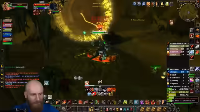 14:20:36Das Team beginnt mit dem Kampf gegen den Boss Shepard in einer der Instanzen. Der Kampf verläuft zunächst holprig, da es zu Problemen mit der Aggro-Registrierung kommt, was den Tank in gefährliche Situationen bringt. Trotzdem wird der Boss besiegt, was als großer Fortschritt gewertet wird. Der Loot-Verdacht des Streamers, dass die Gegenstände nicht korrekt angezeigt werden, hält an. Ein Reload der Benutzeroberfläche wird notwendig. Der Erfolg des Kampfes und der erhaltene Loot werden im Chat gefeiert.