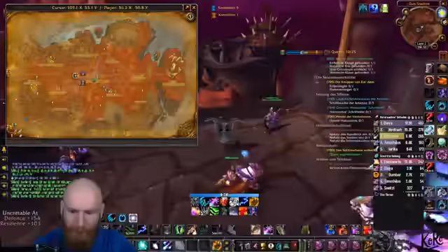 00:00:42Zu Streambeginn konzentriert sich der Fokus auf die Organisation des Gruul- und Magtheridon-Raids. Der Streamer identifiziert ein Problem mit der fehlenden Besetzung, insbesondere der Ausfall eines Affliction-Warlocks und eines Resto-Schamanen. Es wird aktiv nach Ersatz gesucht, indem die vorhandenen Warlocks Lino, Waps und Zef darauf angesprochen werden, die Affliction-Rolle zu übernehmen. Gleichzeitig werden Random-Spieler für die fehlenden DPS- und Heiler-Slots gesucht, um die 25-Platten-Besetzung zu erreichen, während der Streamer parallel Turm-Dailys absolviert.