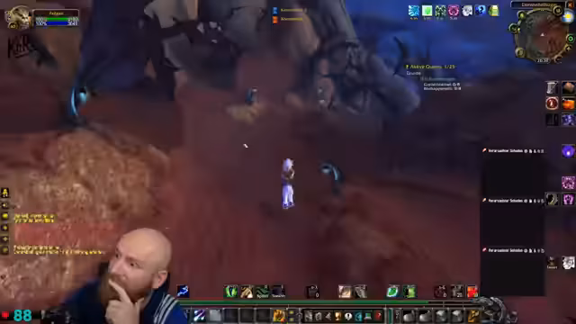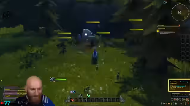 11:55:36Die Gruppe questet weiter im Blutelfengebiet, wobei die Story und die Umgebungen im Vordergrund stehen. Der Streamer genießt das Gebiet, merkt aber an, dass die Welt ihm "den Kopf stellt". Es werden verschiedene Quest-Interaktionen beschrieben, wie das Zerstören von Totems und das Lösen von Rätseln. Der Fokus liegt auf der Erkundung und der Fortführung der Hauptgeschichte, auch wenn es gelegentlich zu kleinen Verwirrungen über den Quest-Fluss kommt.