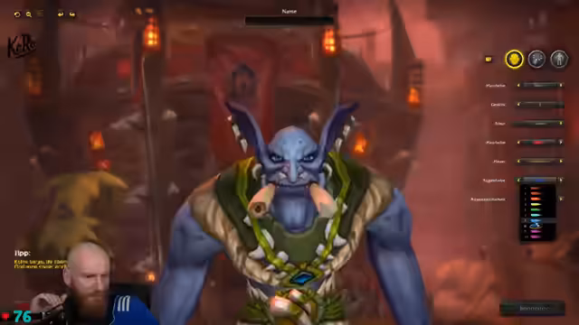 06:00:18Der Streamer beginnt mit der Charakter-Erstellung für ein neues Spiel in der World of Warcraft. Er fühlt sich wie ein Dinosaurier, der eine Zeitreise in ein modernes Spiel unternimmt. Er diskutiert ausführlich das Aussehen des Charakters, insbesondere die Gesichtsbemalung, und entscheidet sich für eine Knochen- oder Elfenbeinoptik. Dabei beklagt er sich über die Einschränkungen bei der Namensgebung, da sein Wunschname bereits vergeben ist. Stream-interne Bots werden eingeführt und das erste Tutorial gespielt.