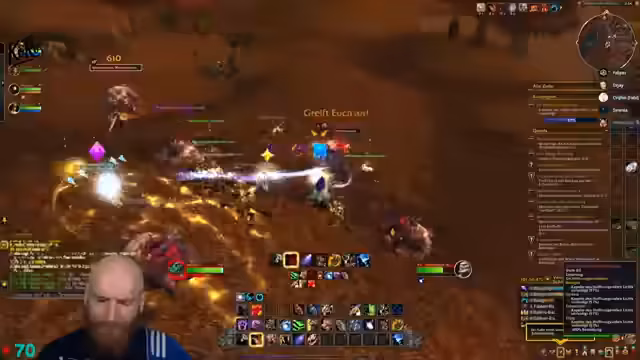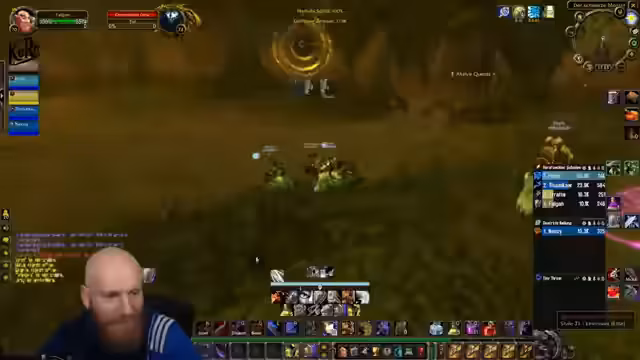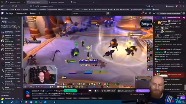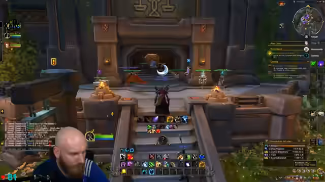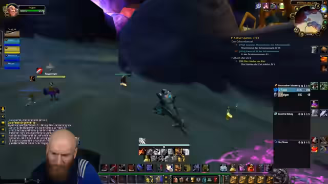 09:20:29Der Streamer befindet sich mitten im Gameplay und interagiert mit seinem Team. Er fügt Battle.net-Freunde hinzu, teilt den Bildschirm mit Jay und Preston und betont, dass alle dem Diamant-Marker folgen sollen. Er beschreibt einen Bug, der auftritt, wenn man den Account zweimal an einem Tag entsperrt, und plant, eine Quest binnen einer halben Stunde abzuschließen. Der Fokus liegt auf einem schnellen Tempo und der Vorbereitung auf eine World First-Level-Quest.