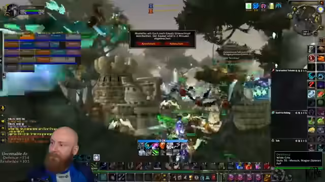 00:08:37Die Vorbereitung für den TBC-Raid läuft. Der Streamer öffnet einen Raid-Invite und gibt an, dass noch ein Ele-Schamane gesucht wird. Er erwähnt das geplante Line-up für den Gruul-Kampf und weist die Tanks und Heiler auf ihre Aufgaben hin. Nach einigen organisatorischen Klärungen, einschließlich des Problems, dass ein Spieler krank ist, und der Verschiebung von Aufgaben auf andere, ist das finale Team für den Raid zusammengestellt.