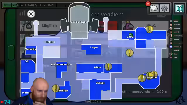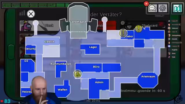 12:14:21Es wurde über die Rollenverteilung im Spiel gesprochen, darunter ein Ingenieur, ein Tracker und ein Shapeshifter. Der Streamer wurde wiederholt verdächtigt, obwohl er beteuerte, nur an den Camps unterwegs gewesen zu sein. Er versuchte, durch das Aufzeigen seiner Bewegungen auf der Karte und das Nachfragen nach den Positionen anderer Spieler seine Unschuld zu beweisen.