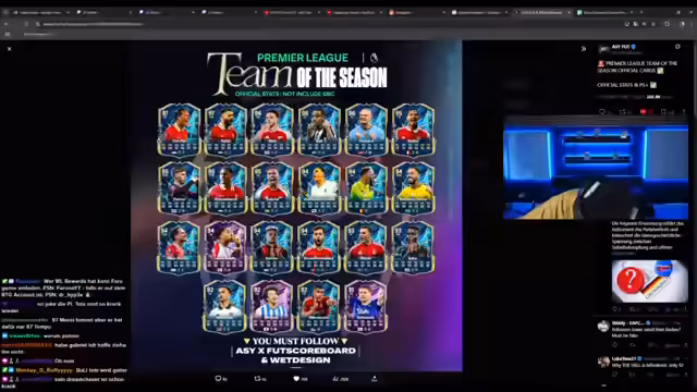 00:08:55Der Streamer analysiert detailliert die vorliegenden Premier League TOTS-Karten, wobei sein Fokus eindeutig auf den Spieler Isak liegt, den er für die beste Karte hält. Er bewertet die Spieler, kritisiert deren Playstyles und gibt Markteinschätzungen ab. So schätzt er, dass die Karte von Isak die Million-Marke übersteigen wird, und ähnliches erwartet er für andere Top-Spieler. Er diskutiert strategisch, welche Karten er sich aus den Packs und SBCs holen möchte, welche er für zu teuer hält und welche Karten er persönlich bevorzugt.