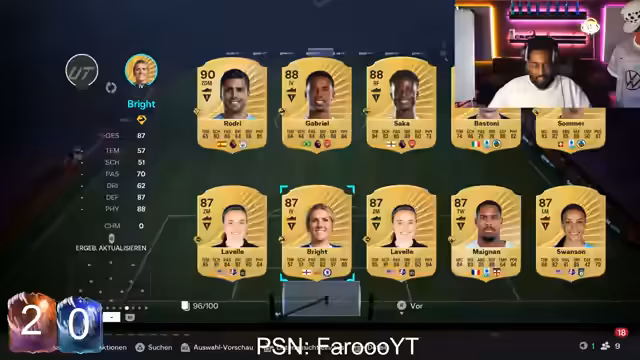 03:01:45Der Streamer bereitet sich auf ein 'Doppel-Roulette' vor, bei dem er gleichzeitig ein Hero Pack und ein Icon Pack öffnen wird. Zuvor diskutiert er sein 'Dream Team' und stellt fest, dass er Schwierigkeiten hat, spezifische Traumspieler zu benennen, da er viele Karten noch nicht ausgiebig gespielt hat. Er überlegt, ob Mia Hamm oder R9 (Ronaldo) die bessere Wahl wäre und tendiert zu Mia Hamm. Er nennt verschiedene Spieler wie Ginola, Rafinha, Hazard, Frank, Ferdinand und Marquinhos für sein potenzielles Team und überlegt, welche Außenverteidiger wie Marcelo, Alba, Nuno Mendes oder Hakimi er einsetzen würde. Er kommt zu dem Schluss, dass sein aktuelles Team bereits sehr stark ist und es kaum Spieler gibt, die es noch 'krass verbessern' könnten, was er als ein Problem des aktuellen Spiels ansieht. Er erwähnt, dass er sich das 'Dream Team' im Grunde jetzt schon holen könnte, da es noch keine 'krasse Karten' gibt, die einen großen Unterschied machen würden. Er ist gespannt auf die 99er-Stats, die die Scream-Karten am Mittwoch erhalten sollen. Schließlich legt er die Regeln für das Doppel-Roulette fest: Einer der gezogenen Spieler muss 85+ Pace haben und beide Karten zusammen müssen einen Wert von über 500.000 Coins haben.