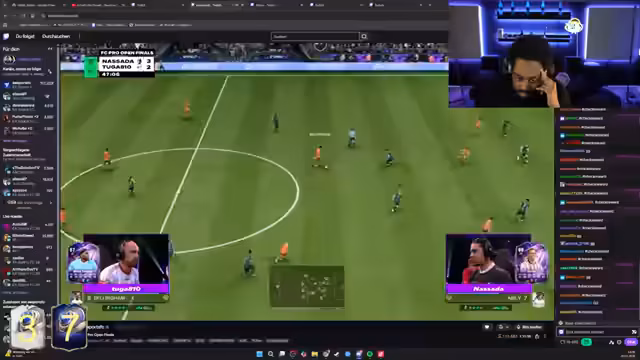 00:13:29Der Streamer und der Chat unterhalten sich über das laufende FC Pro Live-Turnier. Es wird über den aktuellen Stand der Spiele gesprochen, die Teilnehmer aus Deutschland, wie Umut und Levi, und die Organisation des Turniers. Besonders wird die harte Qualifikationsphase für die WM und die Anreise der Spieler diskutiert, die für einige nur wenige Stunden in Saudi-Arabien verweilen mussten.