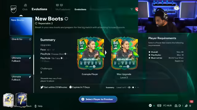 02:36:54Nach zahlreichen Pack-Öffnungen und Unterbrechungen konzentriert sich der Streamer endlich auf den eigentlichen Titelinhalt. Er beginnt, die beiden neuen TOTY-Karten, Lionel Messi und Alexia Putellas, zu testen. Er zeigt begeistert von den Fähigkeiten der Spielerinnen und Spieler und versucht, ein passendes Team mit korrekter Chemie aufzustellen, um ihre Performance optimal zu bewerten.