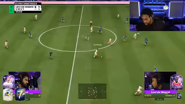 01:07:53Der Fokus verschiebt sich auf ein Finale der FC Pro Live. Anders und Umut treten gegeneinander an. Der Streamer beschreibt ein knappes und spannendes Spiel, in dem Anders die Oberhand behält. Er hebt Anders' mentale Stärke und Spielverständnis unter hervor. Es wird ein packendes Elfmeterschießen beschrieben, das Anders klar für sich entscheiden kann. Die Fan-Gemeinschaft um Anders wird ebenfalls erwähnt.