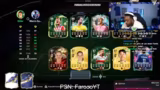 00:22:01Es beginnt das Öffnen der verschiedenen Pick-Packs. Der Streamer öffnet sowohl die Weekend-League-Picks als auch diverse andere Packs. Leider verläuft das Ziehen sehr unbefriedigend, da keine nennenswerten Spieler gezogen werden. Er zeigt sich enttäuscht und sarkastisch über das Pech und beklagt, dass es unmöglich erscheine, auch nur einen Toty-Spieler zu ziehen.