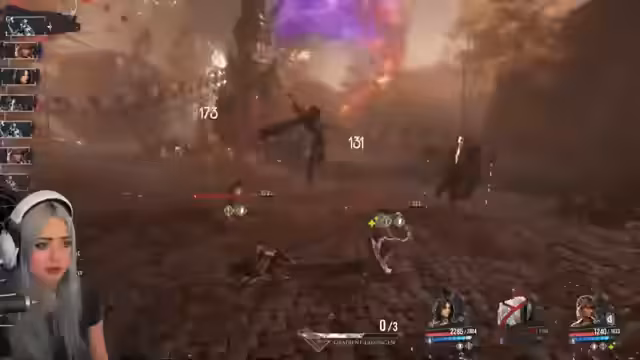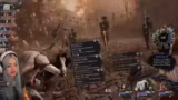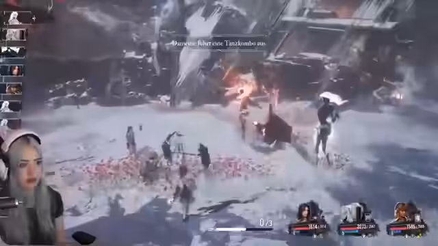 03:15:04Die Expedition gelangt in den Kopf einer riesigen Puppe, was eine überraschende Wendung darstellt. Der Streamer kämpft hier gegen mächtige Gegner, die sofort mehrere Schilde auf die Gruppe legen. Er erkennt, dass er dringend die Fähigkeit 'zweite Chance für alle' freischalten muss, um die Kämpfe zu überstehen, ist jedoch durch anhaltende Tode in einem Teufelskreis gefangen.