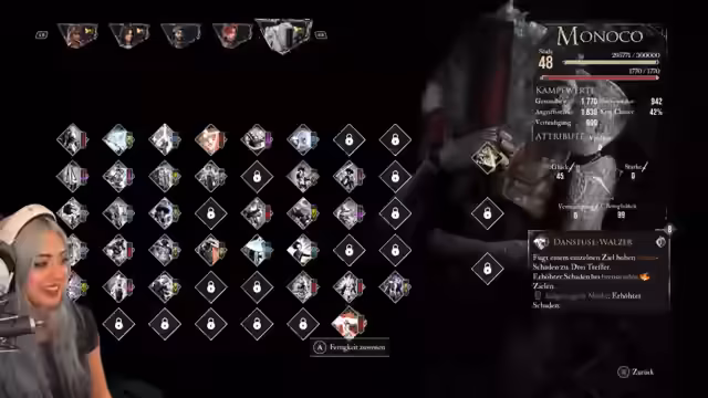 02:28:20Der Streamer vertieft sich in die optimalen Attribute und Fähigkeiten für seine Charaktere. Er skaliert Verteidigung und Beweglichkeit, um den Schaden seiner Waffe signifikant zu erhöhen und erklärt die Wichtigkeit der Synergie zwischen Waffe und Fertigkeiten. Trotz dieses strategischen Vorgehens kämpft er weiterhin mit der Timing-Kontrolle im Kampf und scheitert oft beim Parieren, was zu wiederholten Toden führt.
