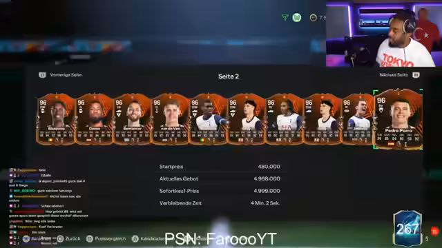 03:51:08Der Streamer diskutiert über die Preise der La Liga Tots-Spieler. Spieler wie Lamin werden um 6 Millionen Coins gehandelt, während andere wie Valverde bei 180.000 Coins liegen. Er eröffnet weitere Packs und ist begeistert, als er Spieler mit hohen Bewertungen wie Rüdiger mit 95er Rating zieht. Gleichzeitig erwähnt er, dass einige Tots-Spieler nicht dropen oder sehr teuer sind, was den Handel im Spiel erschwert. Er zeigt Euphorie über einige gute Ziehungen, bleibt aber insgesamt kritisch gegenüber den Pack-Öffnungen.