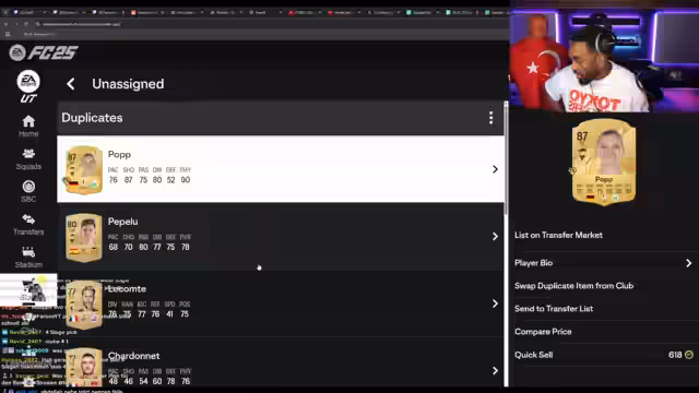 03:39:48Der Streamer zeigt große Frustration über die gezogenen Spieler, nachdem hunderte Packs geöffnet wurden. Er erwähnt, dass er nur wenige wertvolle Spieler wie Chavinga gezogen hat, während andere User im Chat bessere Karten erhalten haben. Er thematisiert auch den Kauf von Spielern wie Vini Junior zu hohen Preisen und diskutiert über den Verkauf von Spielern, die er nicht benötigt, um Coins für Puteas zu sparen. Die Stimmung ist geprägt von Enttäuschung über die erhaltenen Karten.